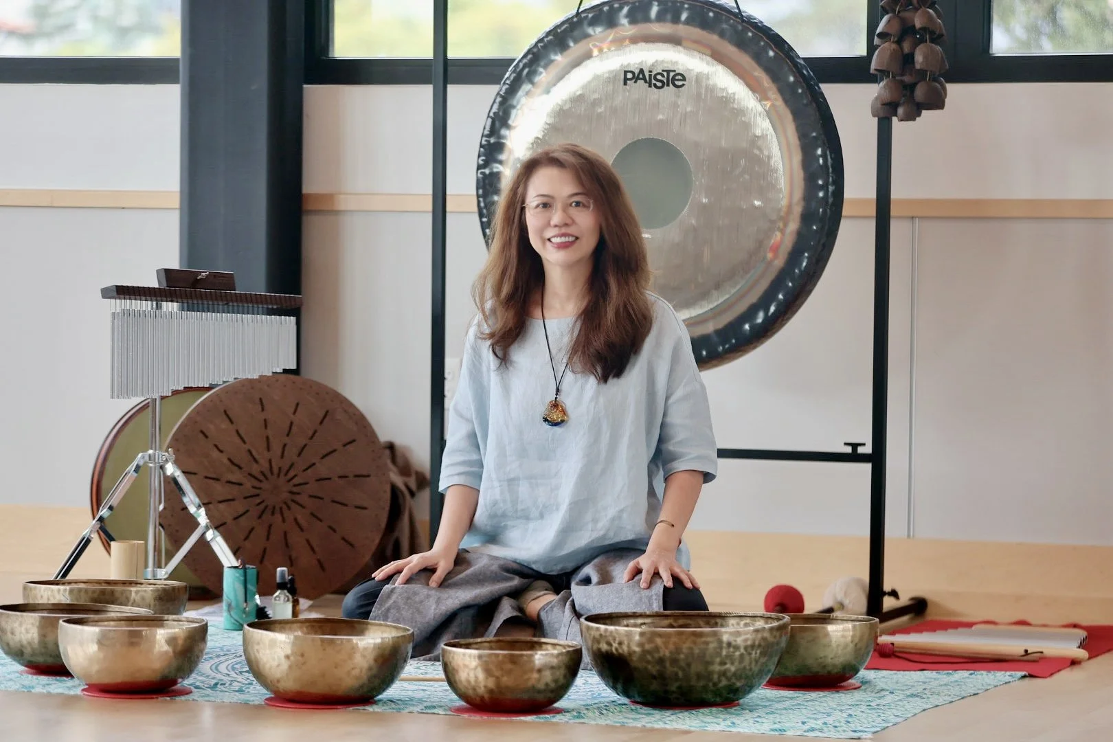 During her sound baths, I often feel a subtle current rise through my body, a tingling awareness, a softening of edges. The resonance of the bowls, ocean drum, and chimes